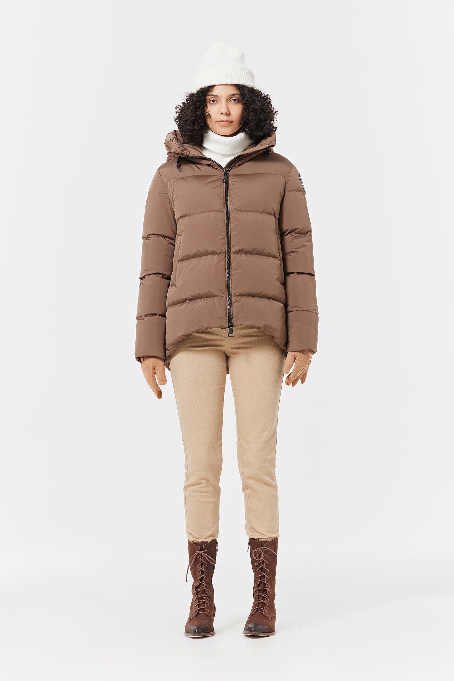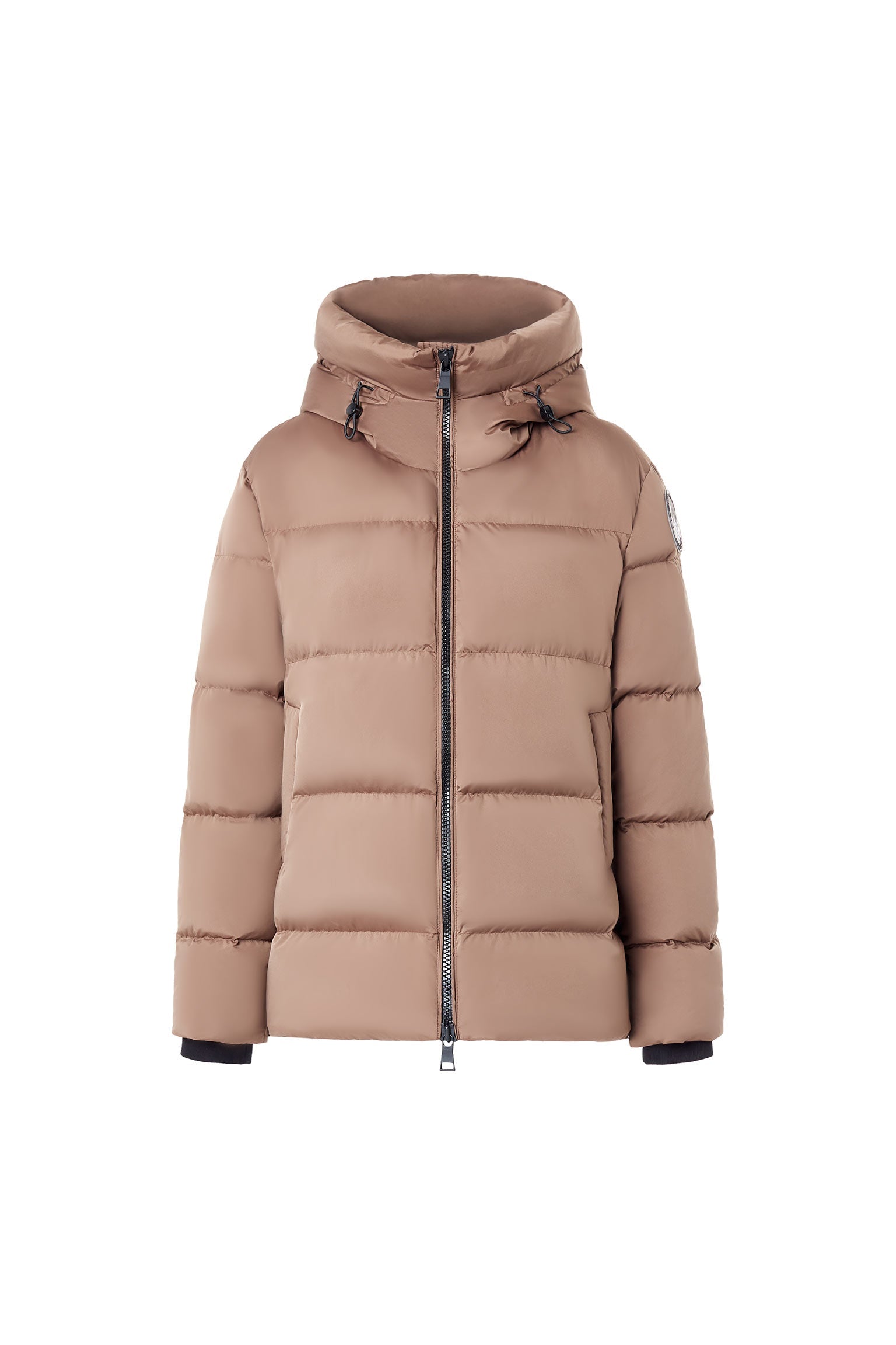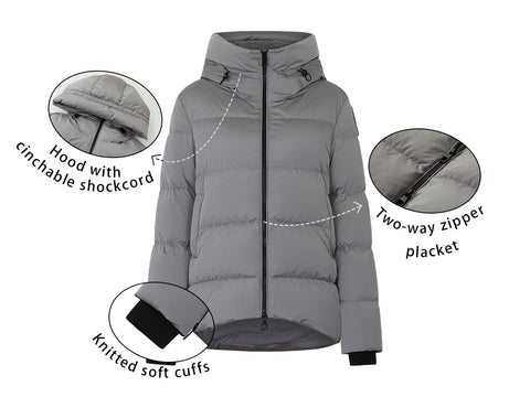 The linda women's puffer down jacket combines protection and style. Made of soft satin ¡ª water-repellent and windproof fabric with a soft feel and filled with 100% responsibly sourced, premium 700+ fill-power duck down that provides ultra-warm, it is characterized by the adjustable drawcord hood. It shows a double-slider zip, comfortable pockets and openings on the cuffs embellished with tape. An internal zippered pocket holds your small accessories while the interior drop pocket offers more expensive storage should you need to stash larger items. A versatile garment that surprises for the infinite occasions of use.
