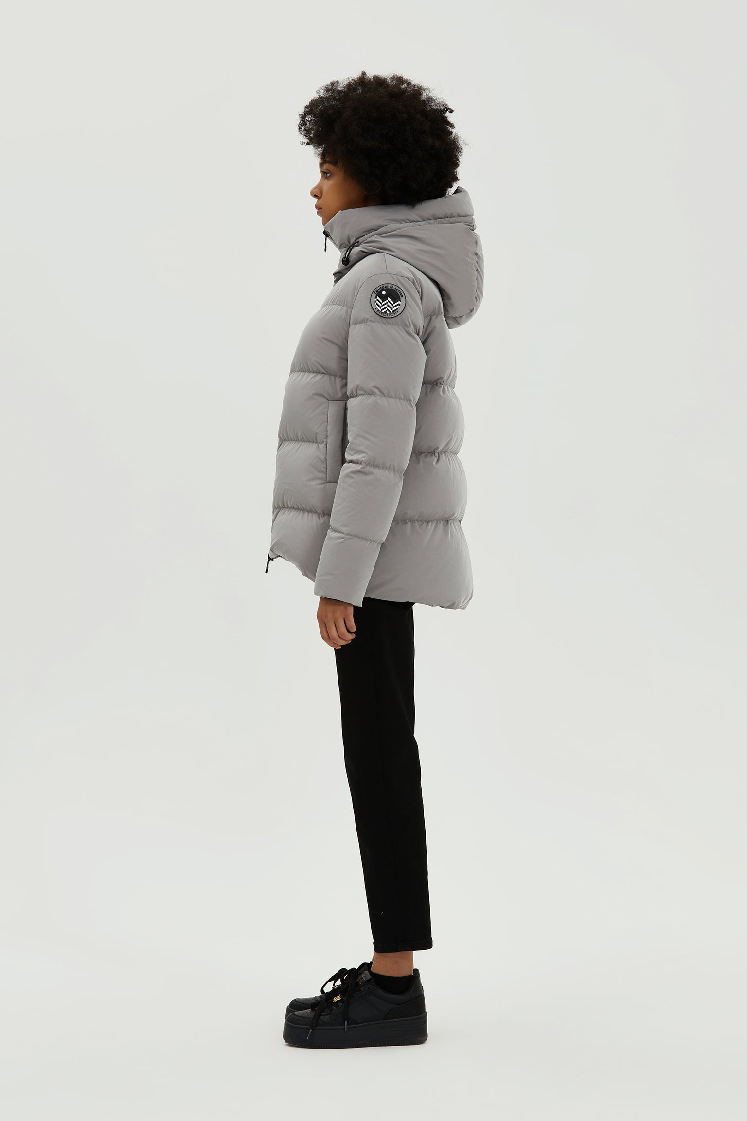 Shell: water-repellent and windproof fabric with a soft feel 100% polyester. Lining (Woven): 100% polyamide. Insulation: 700 + fill power down, 90% duck down, 10% duck feathers.