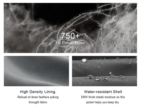 - 700+ fill powder duck down offers warmth yet remains compressible and light.