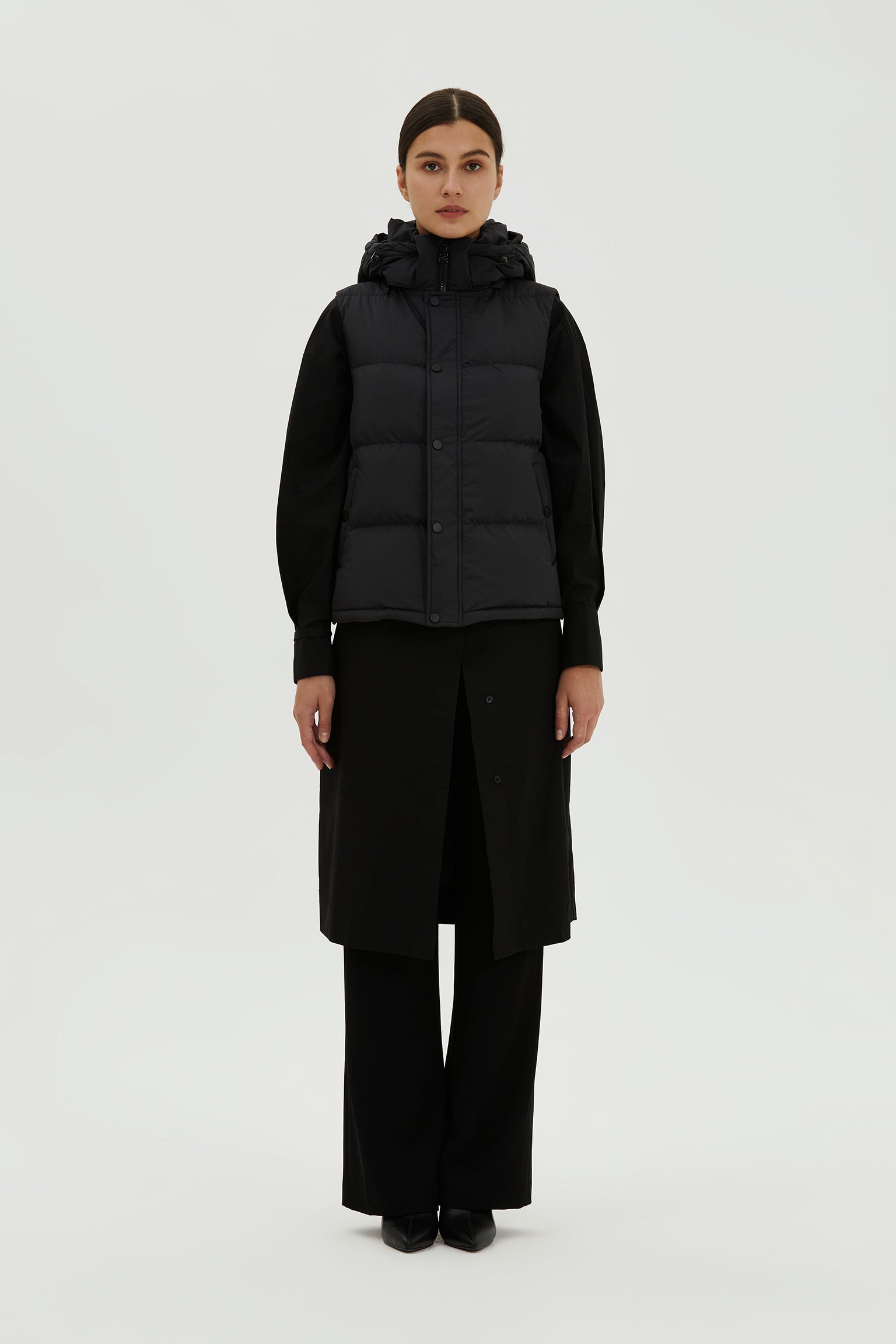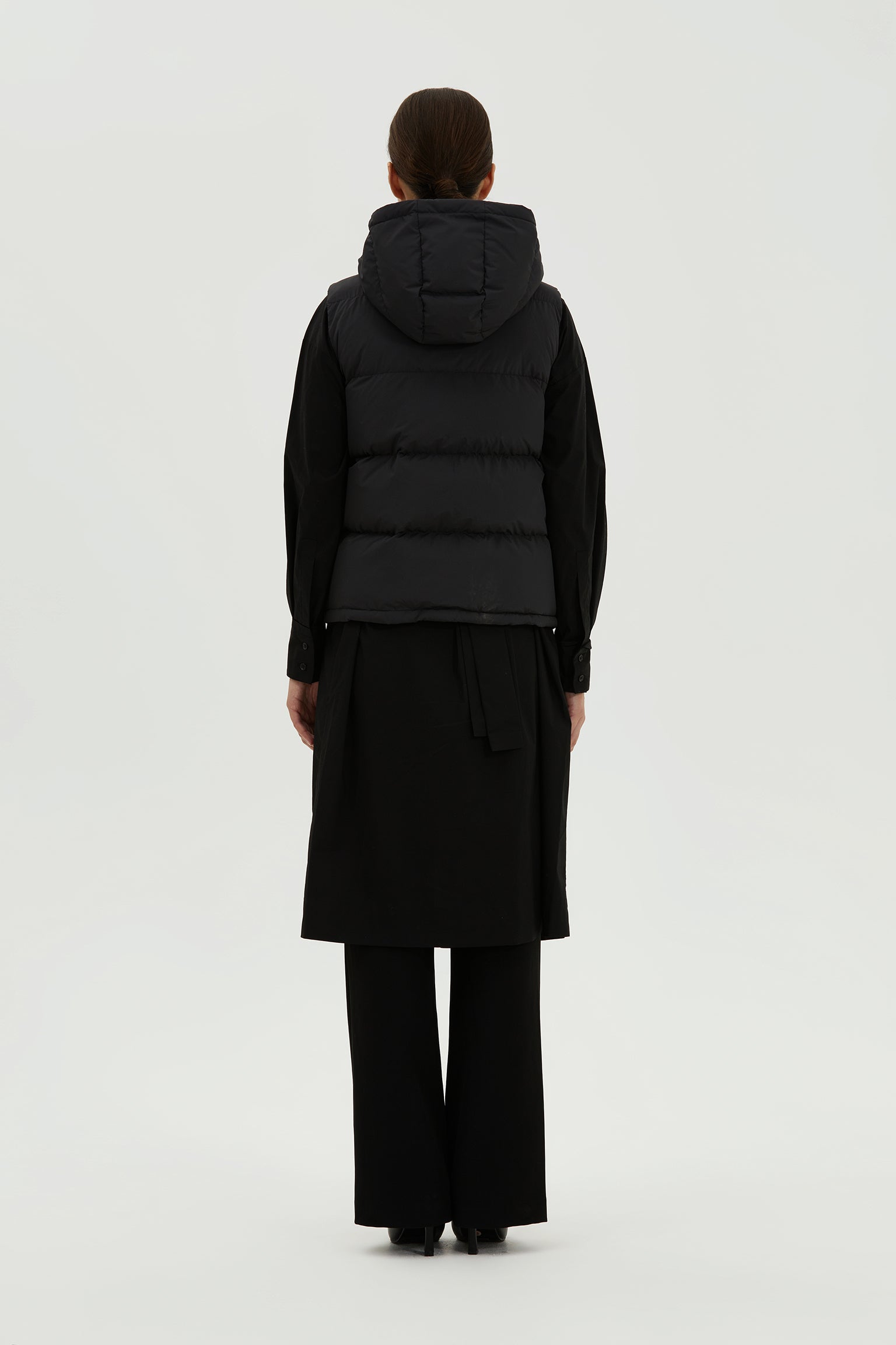 This Sylvia women's down vest is characterized by adjustable shockcord hem, storm flap placket,? and a cozy weather-shield hood that keeps the cold out. It's engineered to deliver warmth to -10¡ãC / 14¡ãF, made with Soft Satin ¡ª water-repellent and windproof fabric with a soft feel, and filled with 100% responsibly sourced, 700+ fill-power duck down that provides ultra-warm, lightweight insulation.Wear it on its own or as a toasty extra layer under coats and jackets when the temperature really drops.