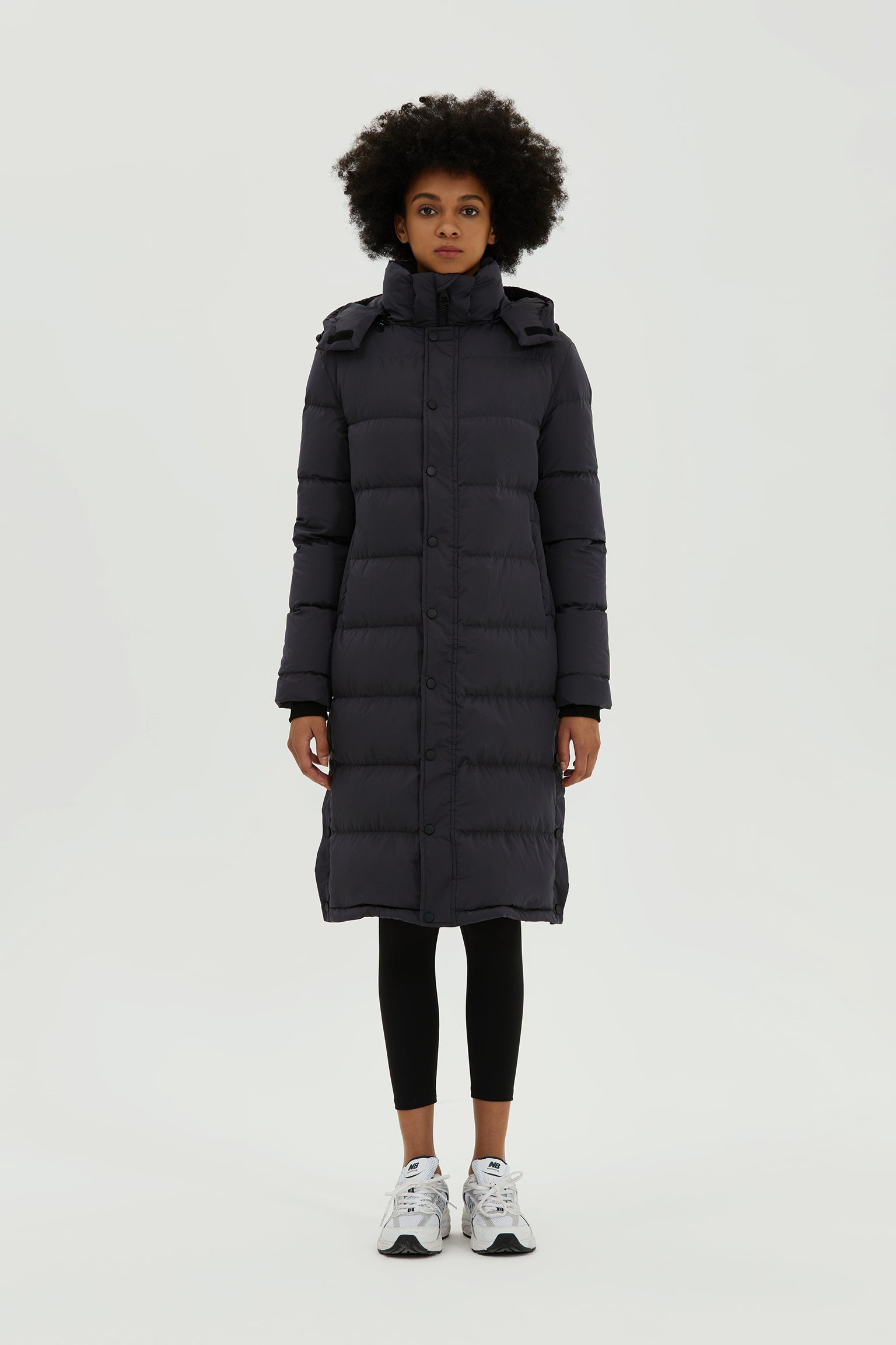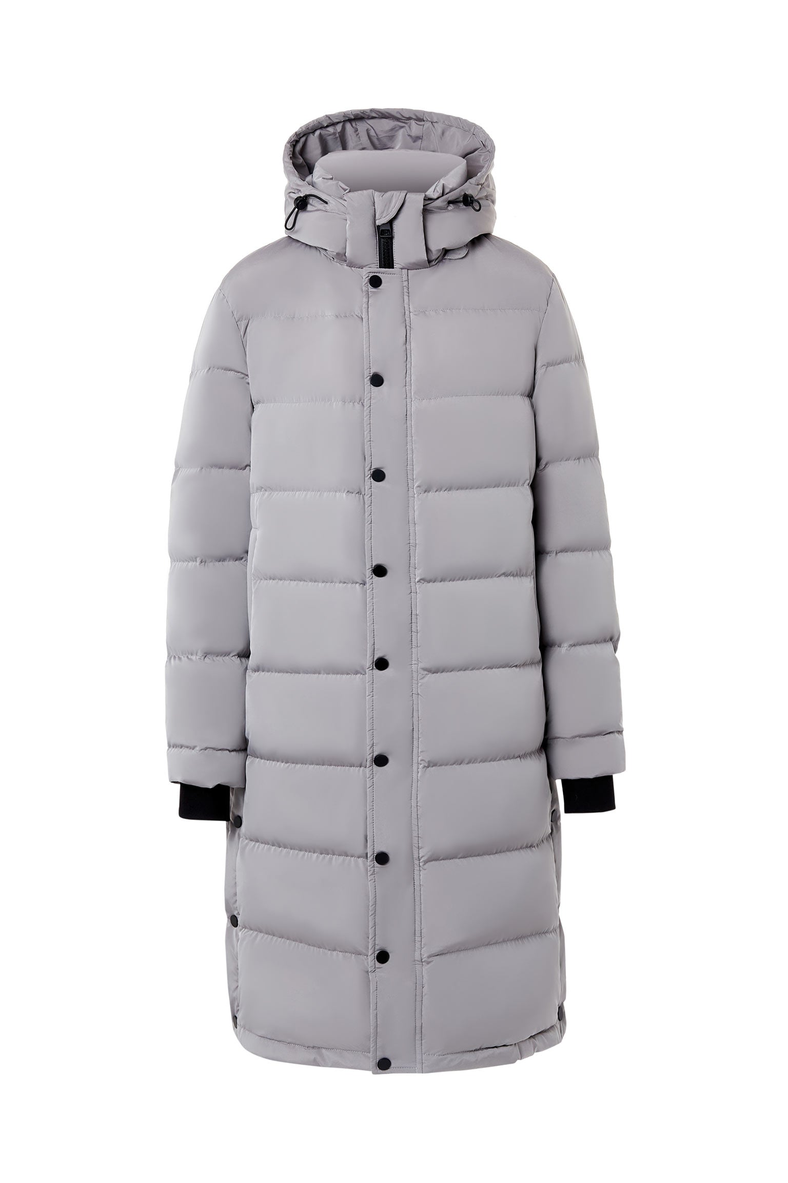 This Sylvia women's down jacket is characterized by recessed Knitted storm cuffs, storm flap placket,? and a cozy weather-shield hood that keeps the cold out. It's engineered to deliver warmth to -10¡ãC / 14¡ãF, made with soft satin ¡ª water-repellent and windproof fabric with a soft feel, and filled with 100% responsibly sourced, 700+ fill-power duck down that provides ultra-warm, lightweight insulation.this longer version coat is designed with maximalist proportions and will keep you super warm where it counts